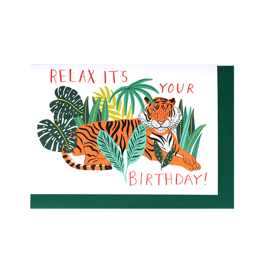 Relax it's your Birthday'. Tiger Birthday card