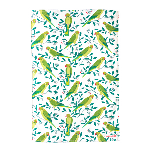 Blue Placement Parakeets Organic Cotton Tea Towel
