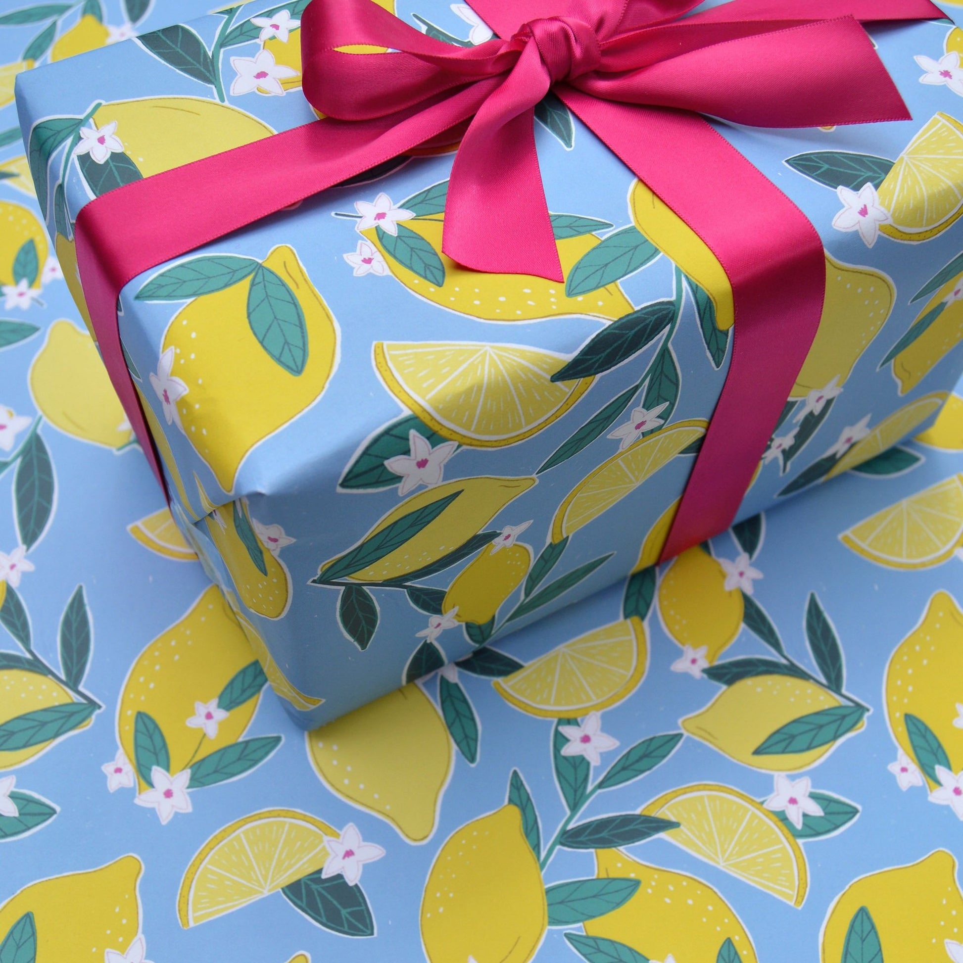 Agregue una tarjeta ilustrada a juego para obtener un hermoso juego de regalo a juego o agregue el papel de regalo con limones.