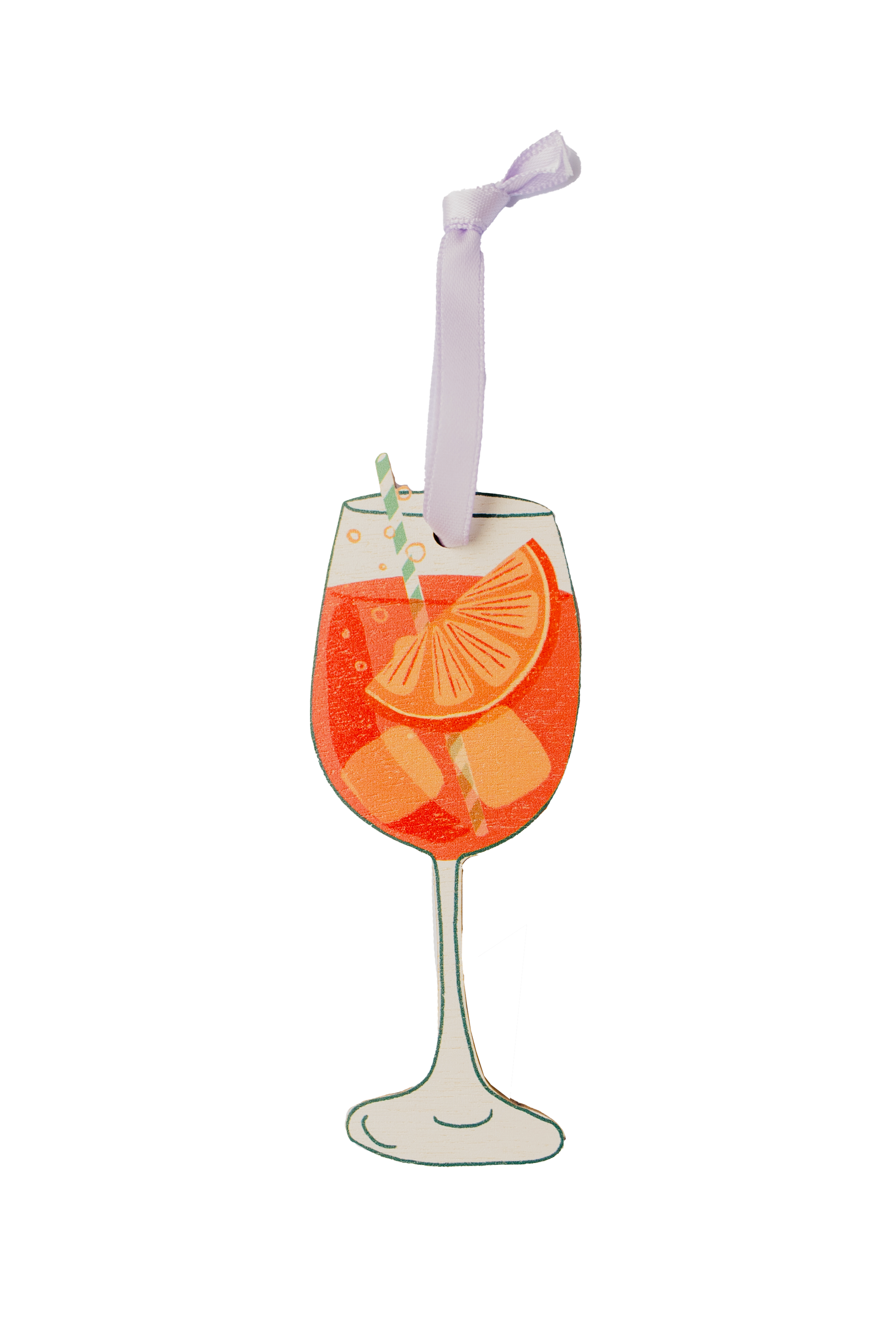 Aperol Spritz Decoration. A colourful, illustrated tree decoration, perfect for cocktail fans and home bar enthusiasts.