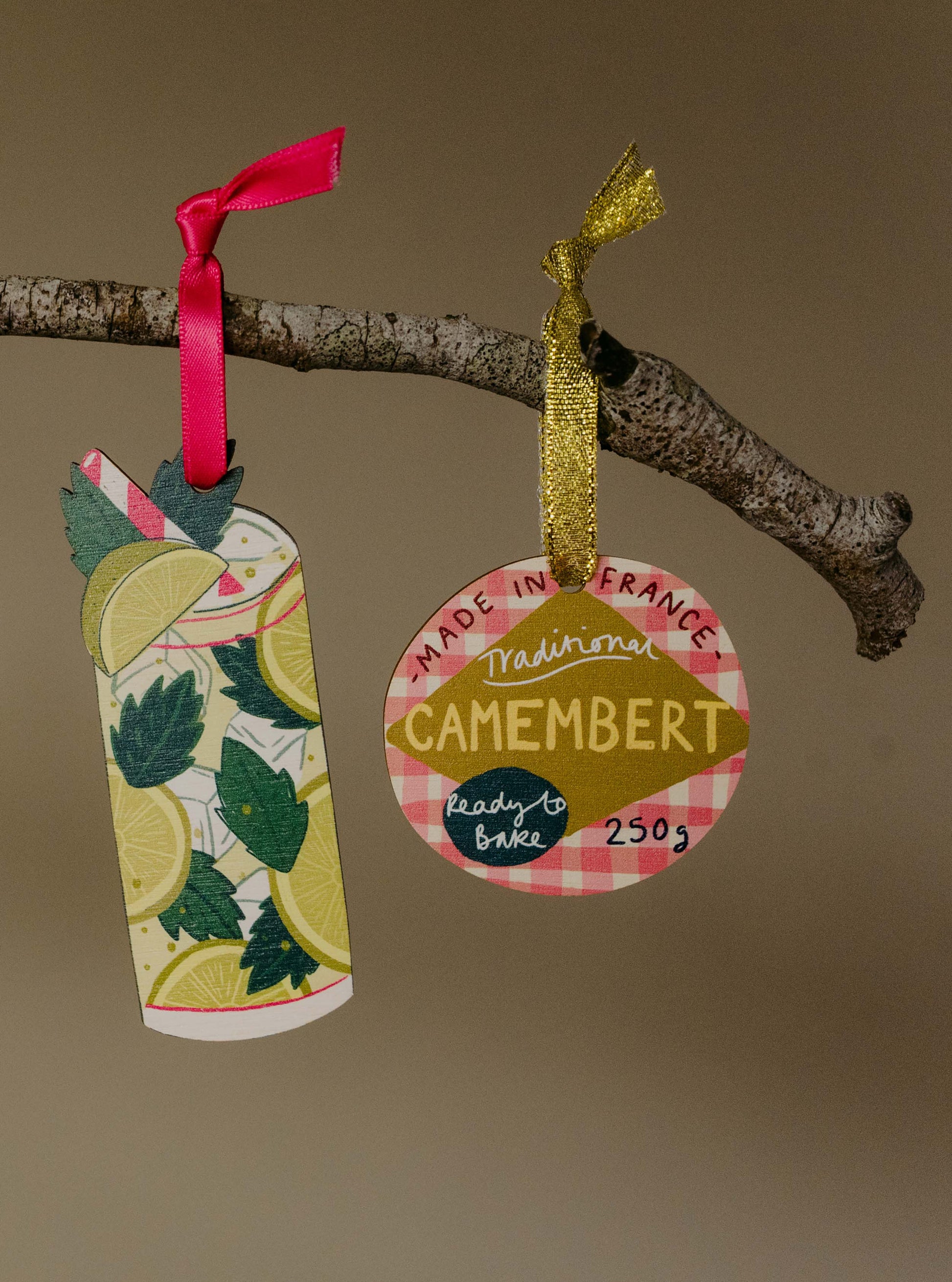 UV printed on one side and laser cut in the UK using wood from sustainable sources. Comes with a ribbon ready to hang and a branded swing tag.