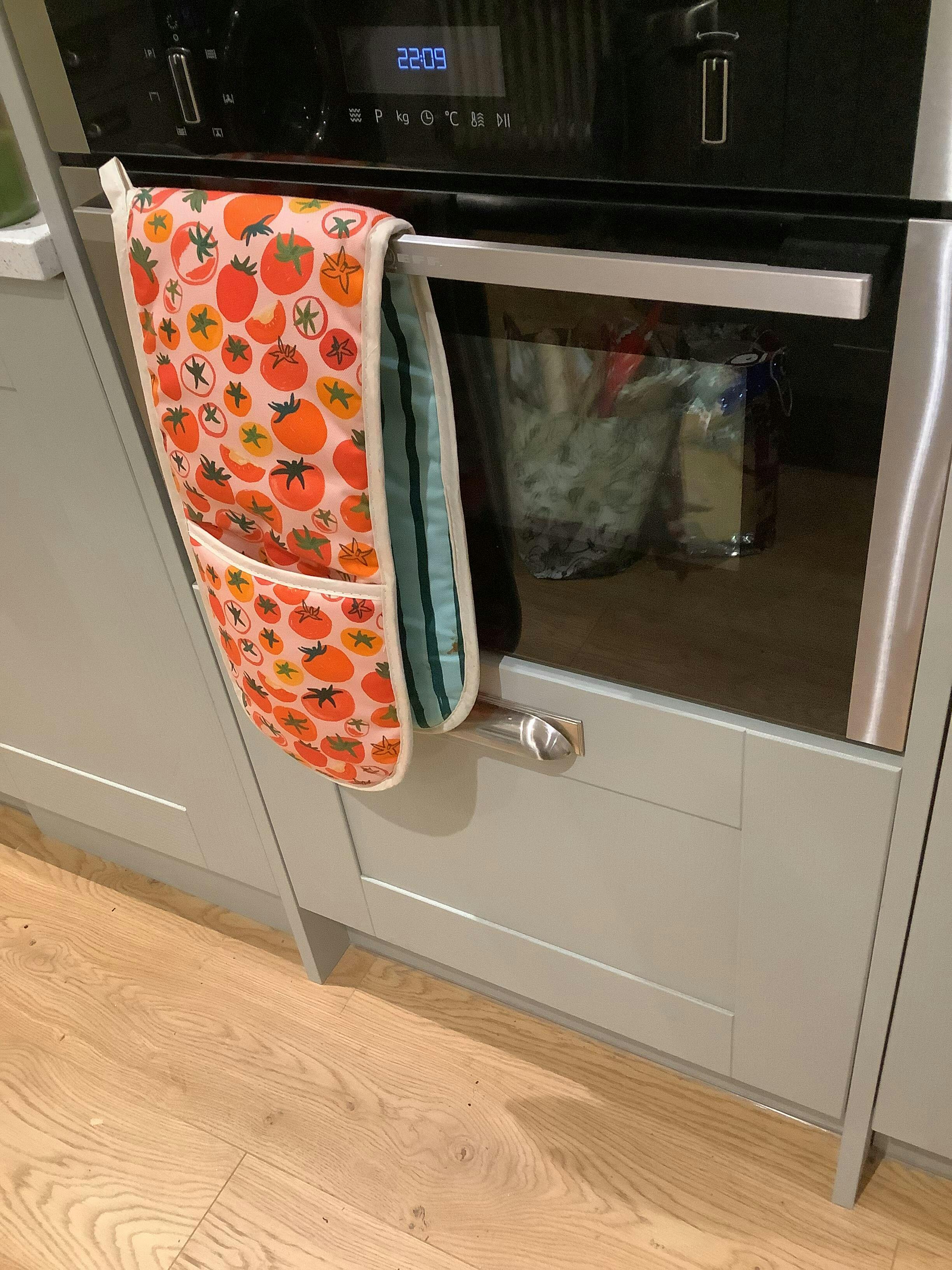 These unique oven gloves are the perfect gift for any tomato loving friends. With a print design that features hand drawn tomatoes in all different shapes and sizes in rich reds and oranges on a pink ground. A great gift for foodies, gardeners and travel lovers and is guaranteed to add a splash of colour to any kitchen.