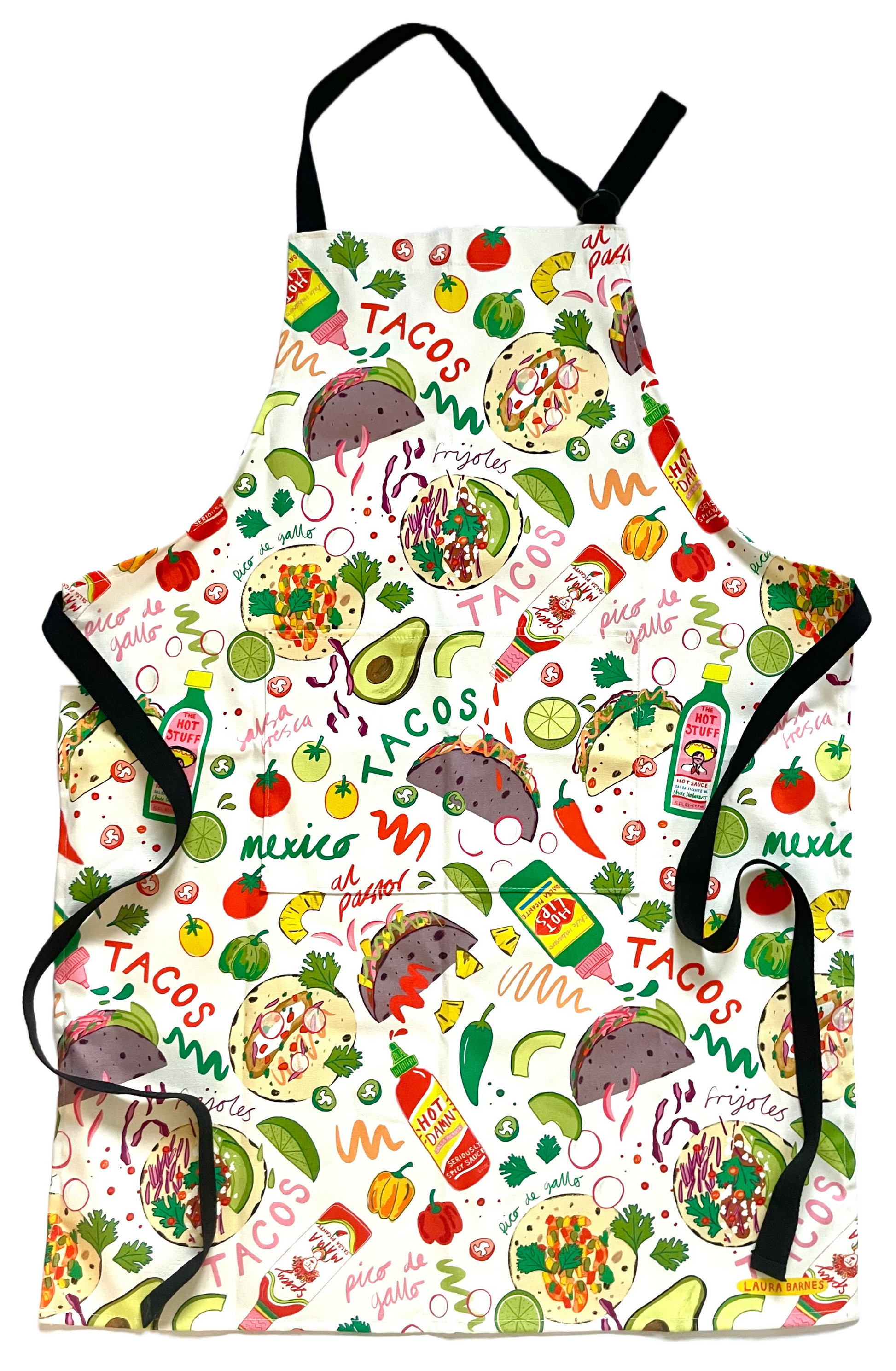 This fun apron celebrates the joy of making and eating tacos and is the perfect gift for any foodie or travel lover.